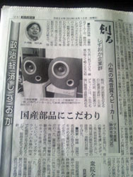 | 2012/08/10 静岡新聞に掲載 県内政経面 創るしずおか企業群 小型の高音質スピーカーとして掲載. |